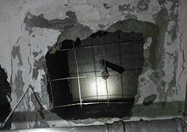 原因:车库地板大面积渗漏及侧面砖墙漏水...